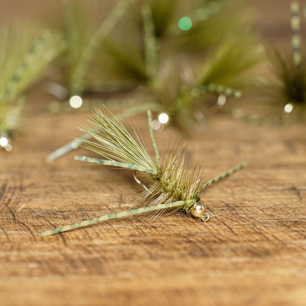 Olive rubber leg Woolly Buggers in size 10 with a 3.2 mm tungsten bead.